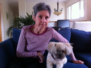 Nash of course was going bonkers having his mom home and somebody to play with in the middle of the afternoon so after the call with Cam, Janet played more ball with Nash and fed him his Scooby Snack afterward. Surprisingly she didn’t just drop it for him, she made me put it in his bowl, told him to sit then told him good boy. He was very patient and responded to my hand signals as back up to Janet’s whispered commands. She was thrilled that he obeyed. I moved her onto the couch to see if that would be more comfortable for her. It certainly was for Nash and Janet really enjoyed visiting with him there.