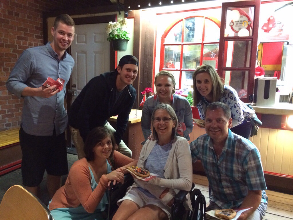 Janet had hung in there really well for that first stint of the day and after a short rest at the hotel it was time for dinner out with the family. Mary and Keith arrived this afternoon as did Cam and we all met for a nice meal topped off for some of us by an Ottawa staple, Beaver Tails!