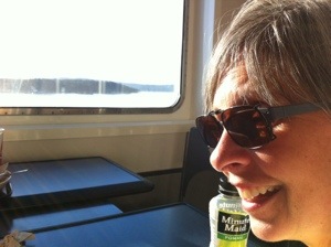 Since Janet had been sitting for the bulk of the day I made sure she walked as much as possible on the ferry. Once we got to our seats the wheelchair was parked and Janet made a couple trips to the bathroom as well as one long excursion to find a warmer seating area. She did really well considering the number of people she had to maneuver around and the unfamiliar territory she was in. Janet said she was nervous about it but by the end of the ride felt much better about it. In fact she didn’t use her wheelchair at all going back to the car to disembark. Once at mom’s, Janet was happy to enjoy a drink on the patio watching the setting sun before calling it a night.