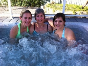 Janet’s conversation skills are certainly improving as evidenced by her striking up a chat with the lady in the hot tub (the one that ended up helping us) and then by having an excellent Skype chat with Andrew. Her speech and recall were outstanding today. There weren’t too many walking opportunities but she did make it up and down our ramp a few times.
